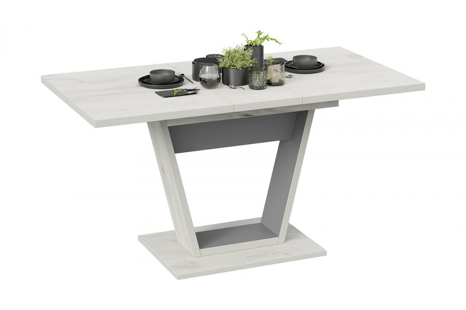 Изготовленный из качественного ЛДСП, стол отличается прочностью и долговечностью. Кромки столешницы и опор обработаны ПВХ, что предотвращает повреждения и увеличивает срок службы мебели. В разложенном виде длина стола достигает 1515 мм, что позволяет разместить больше гостей.