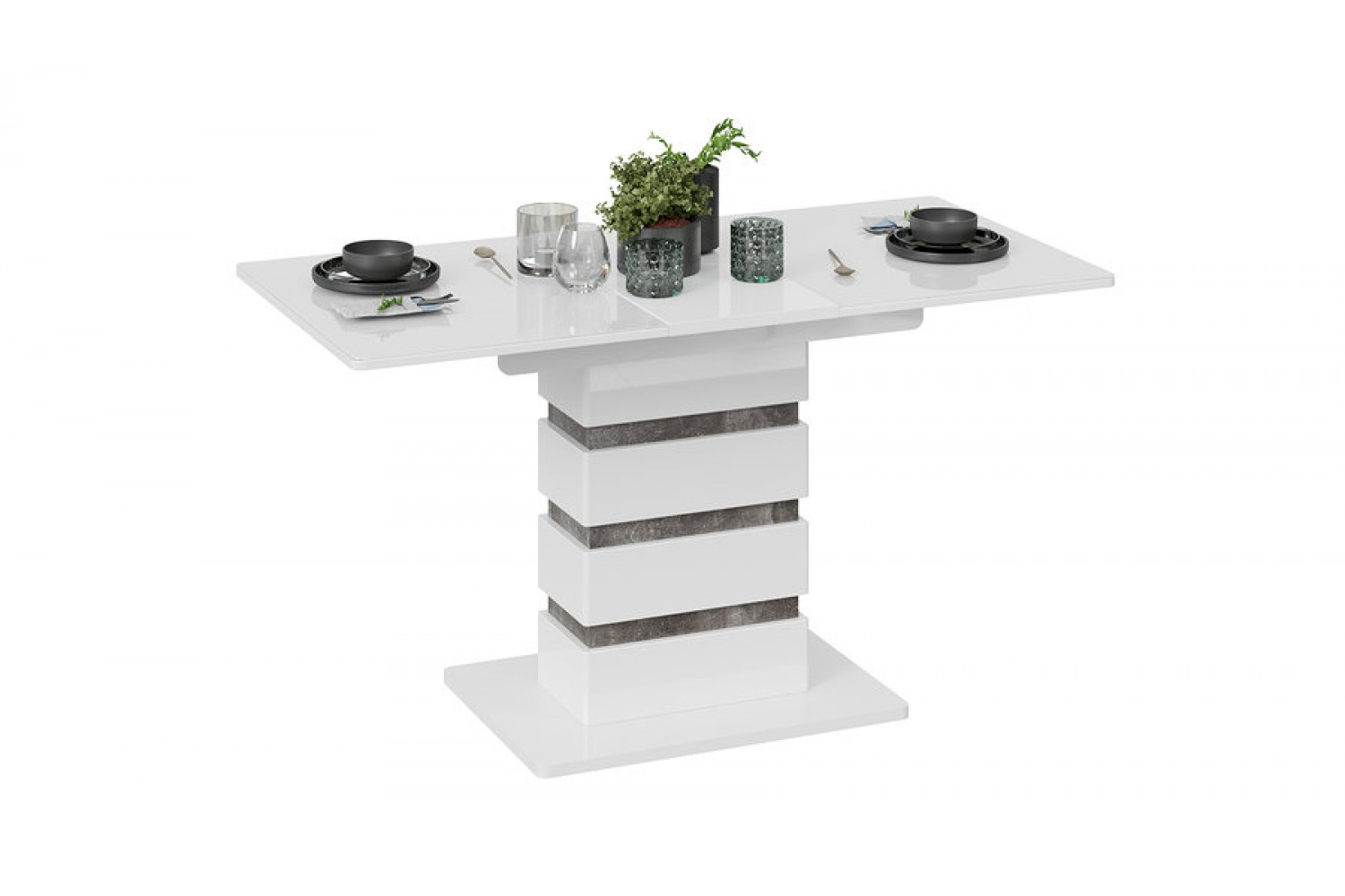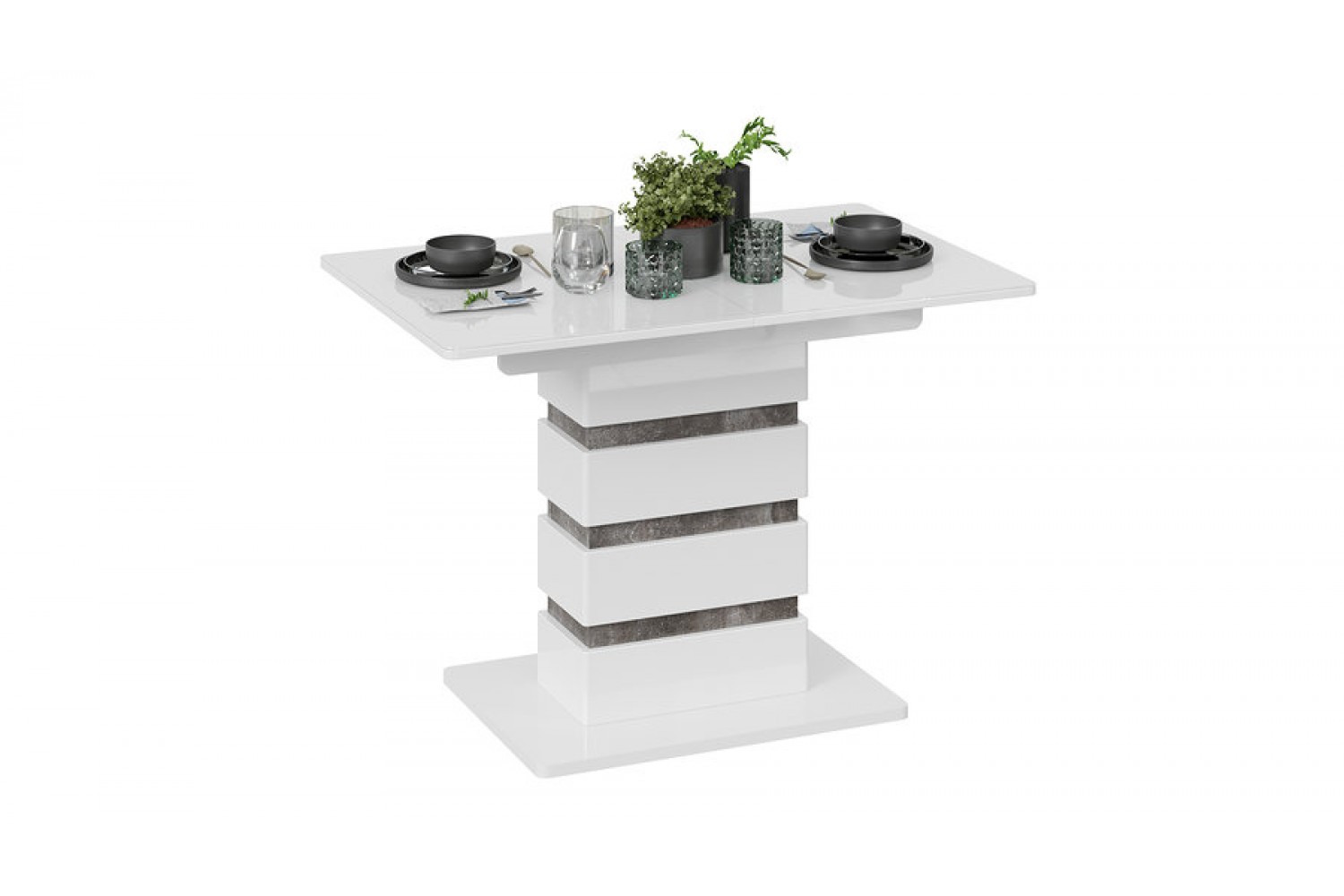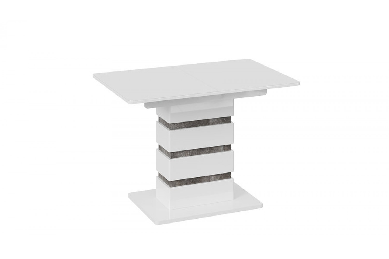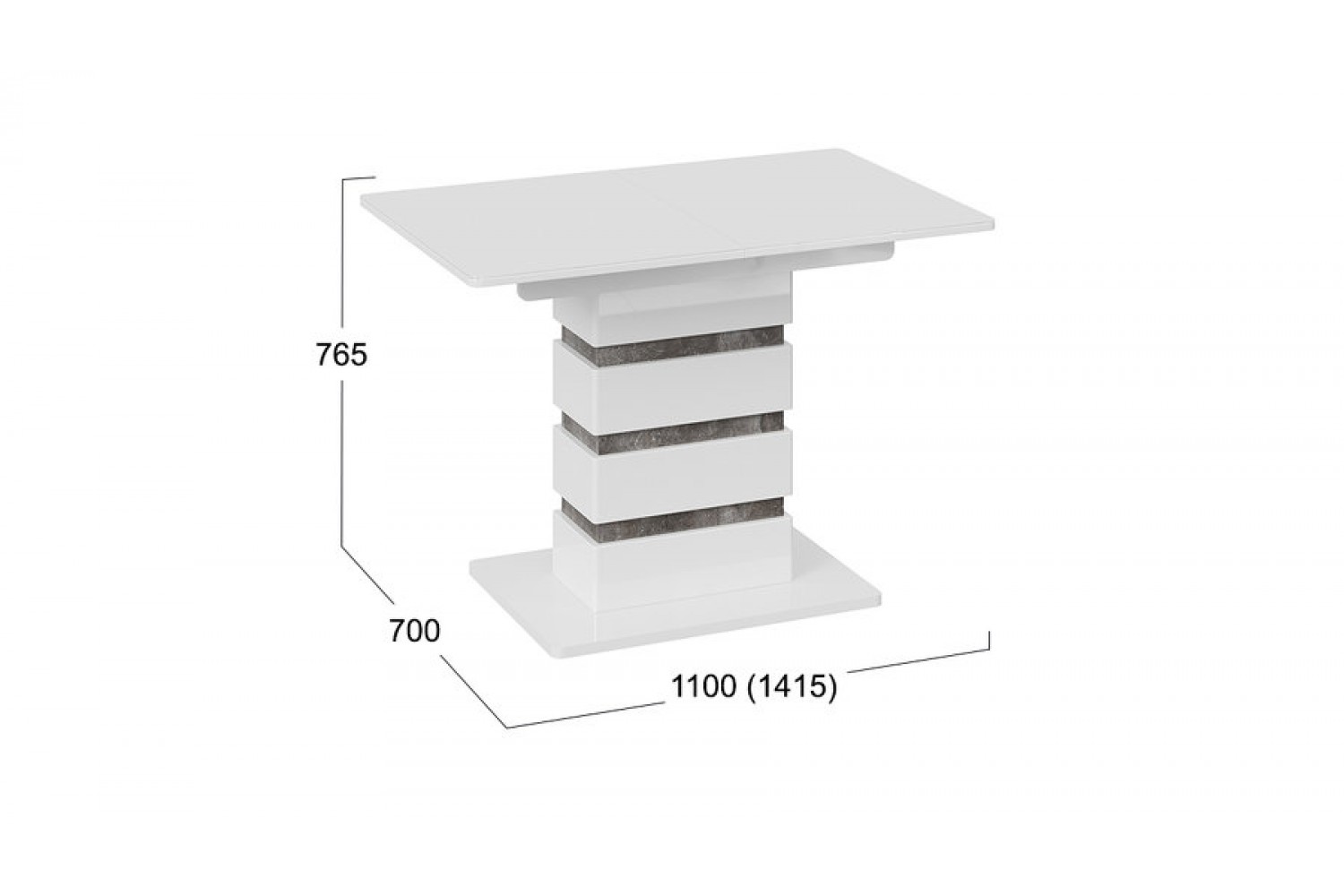 Кромка столешницы и подстолья защищена ПВХ, что обеспечивает дополнительную устойчивость к повреждениям. Стол оснащен механизмом раскладки, позволяющим увеличить длину до 1415 мм, что делает его удобным для больших семейных встреч или дружеских ужинов. С одним опорным элементом он обеспечивает надежную поддержку и устойчивость.