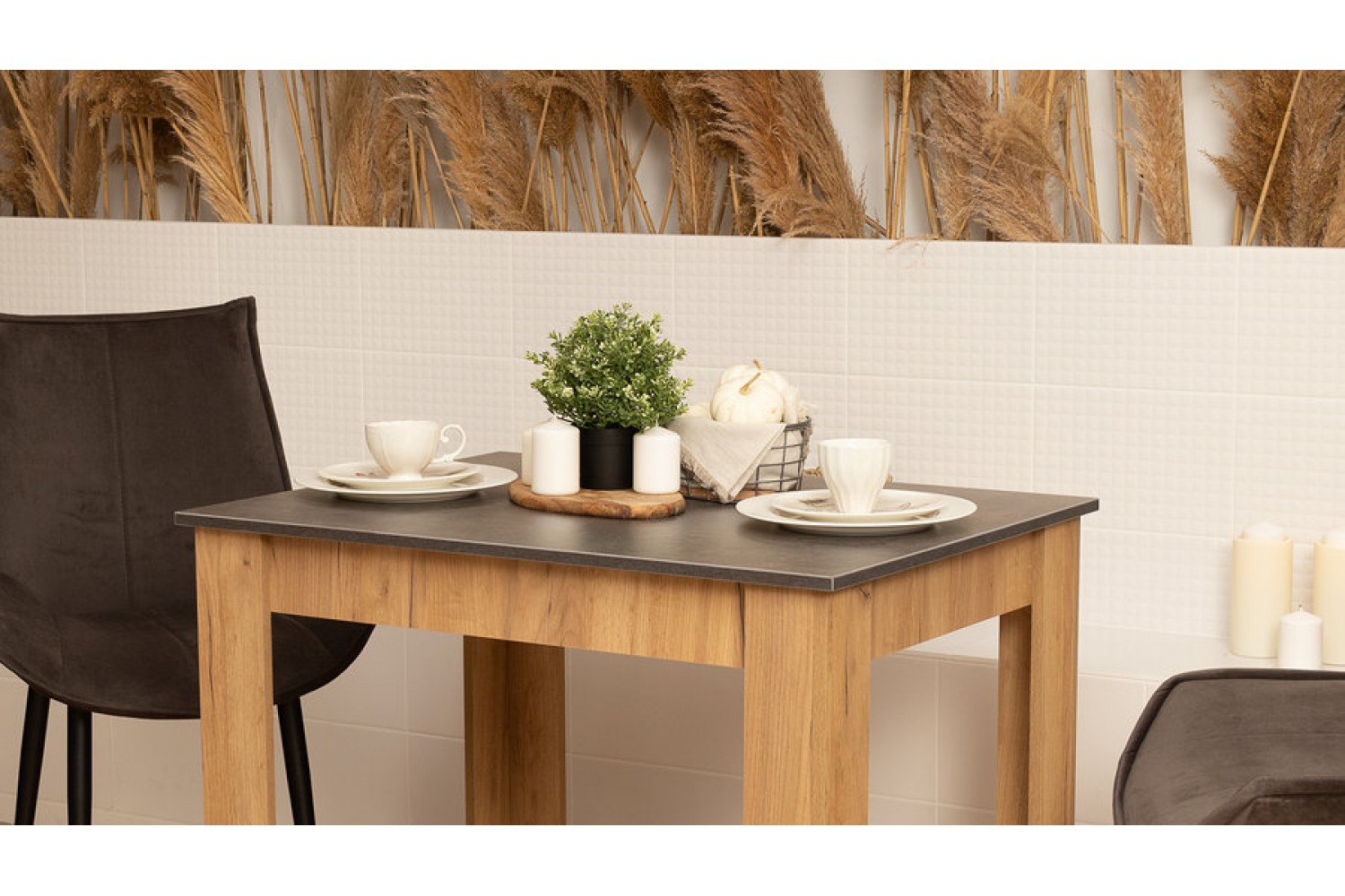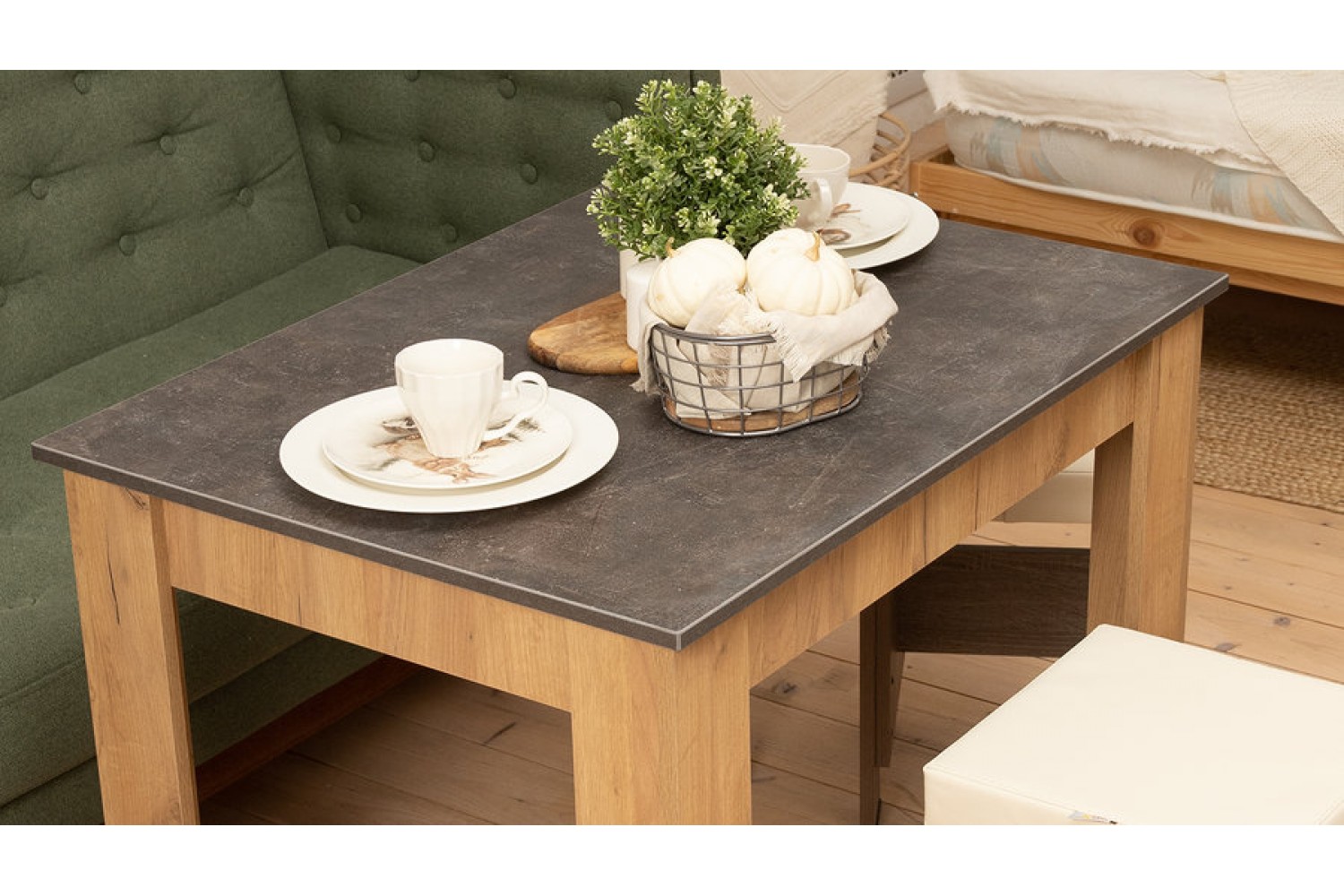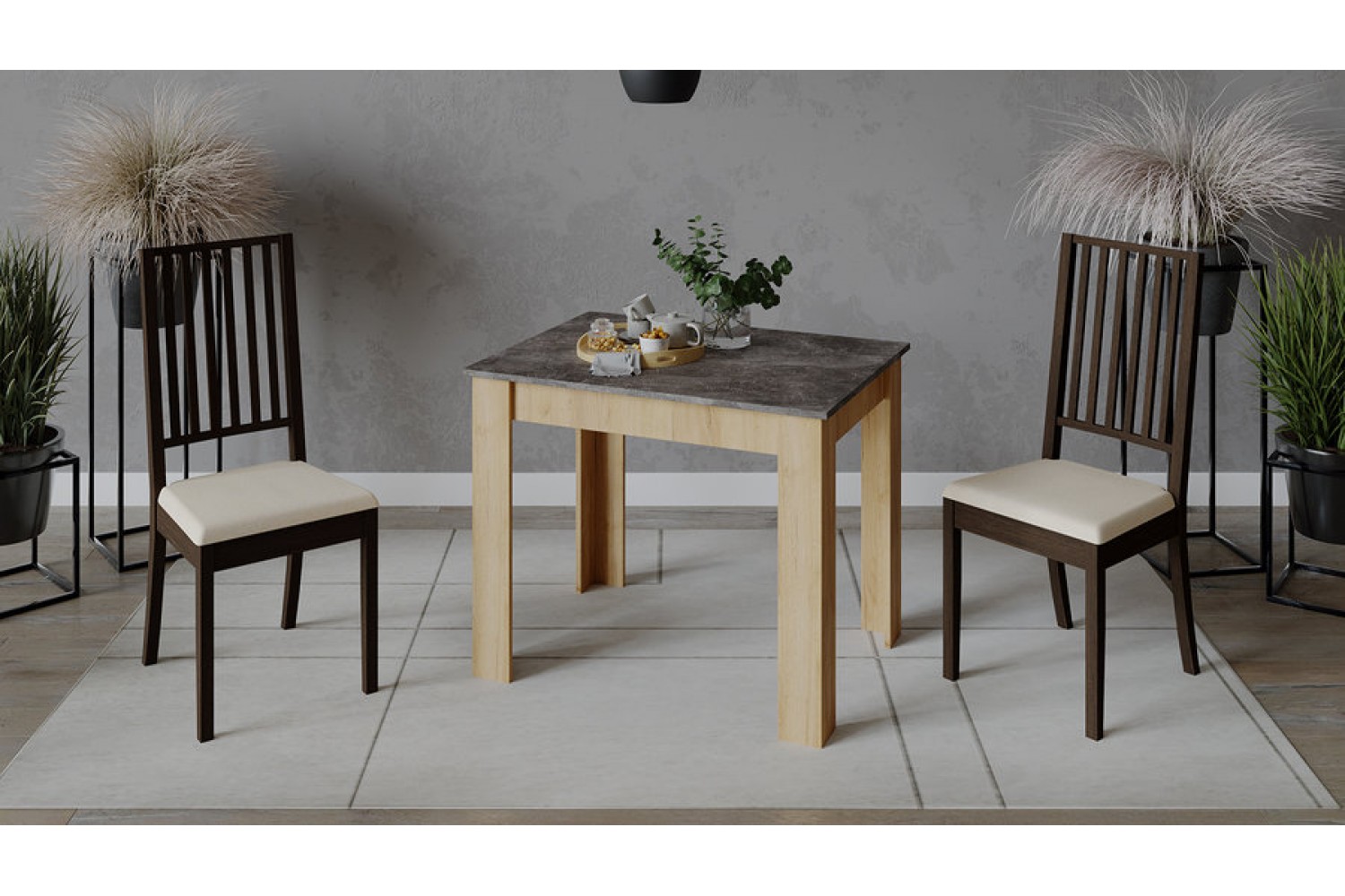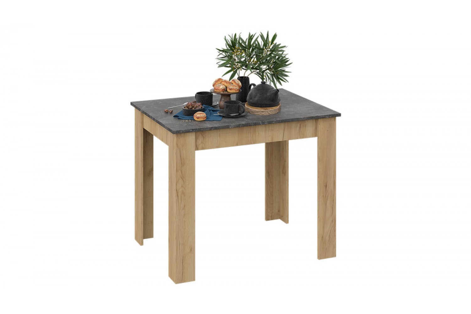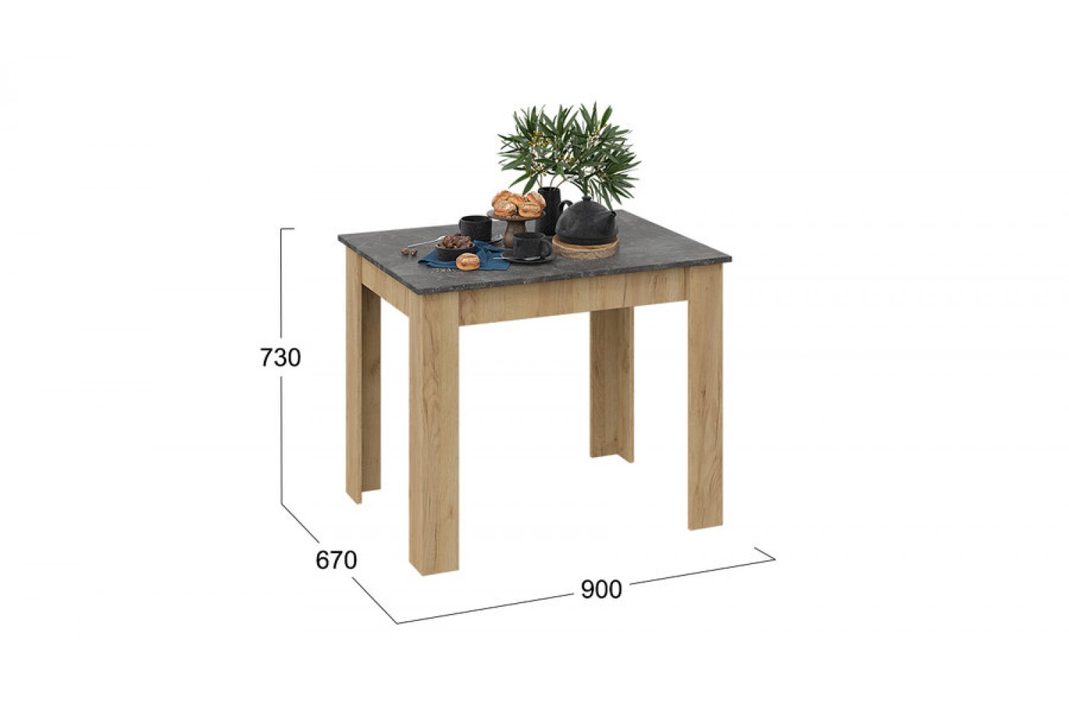 Светло-коричневый каркас гармонично сочетается с асфальтной столешницей, создавая стильный и современный вид. Этот стол станет не только функциональным элементом, но и украшением вашего дома, способствуя уютным семейным обедам и дружеским встречам.