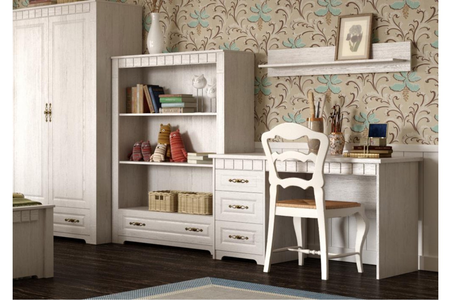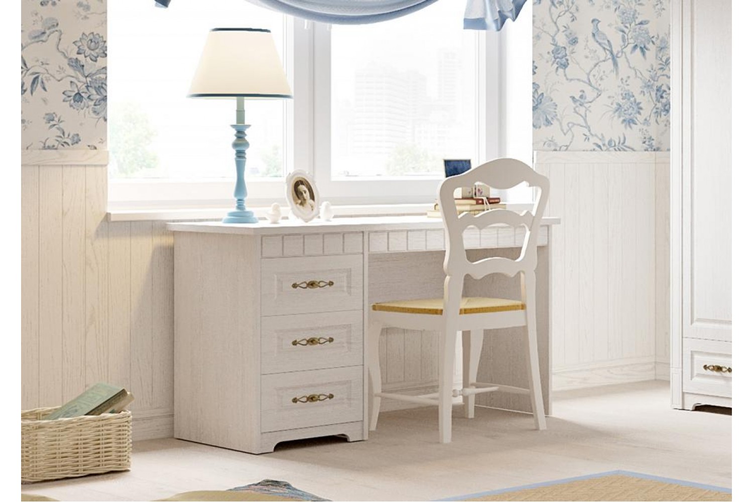 Размеры стола составляют 1270 мм в ширину, 600 мм в глубину и 755 мм в высоту, что обеспечивает достаточно места для учебных принадлежностей и личных вещей. Стол выполнен в изысканном цвете Бодега белая с элементами Патина премиум, что добавляет ему элегантности и гармонично вписывается в интерьер в стиле прованс.
