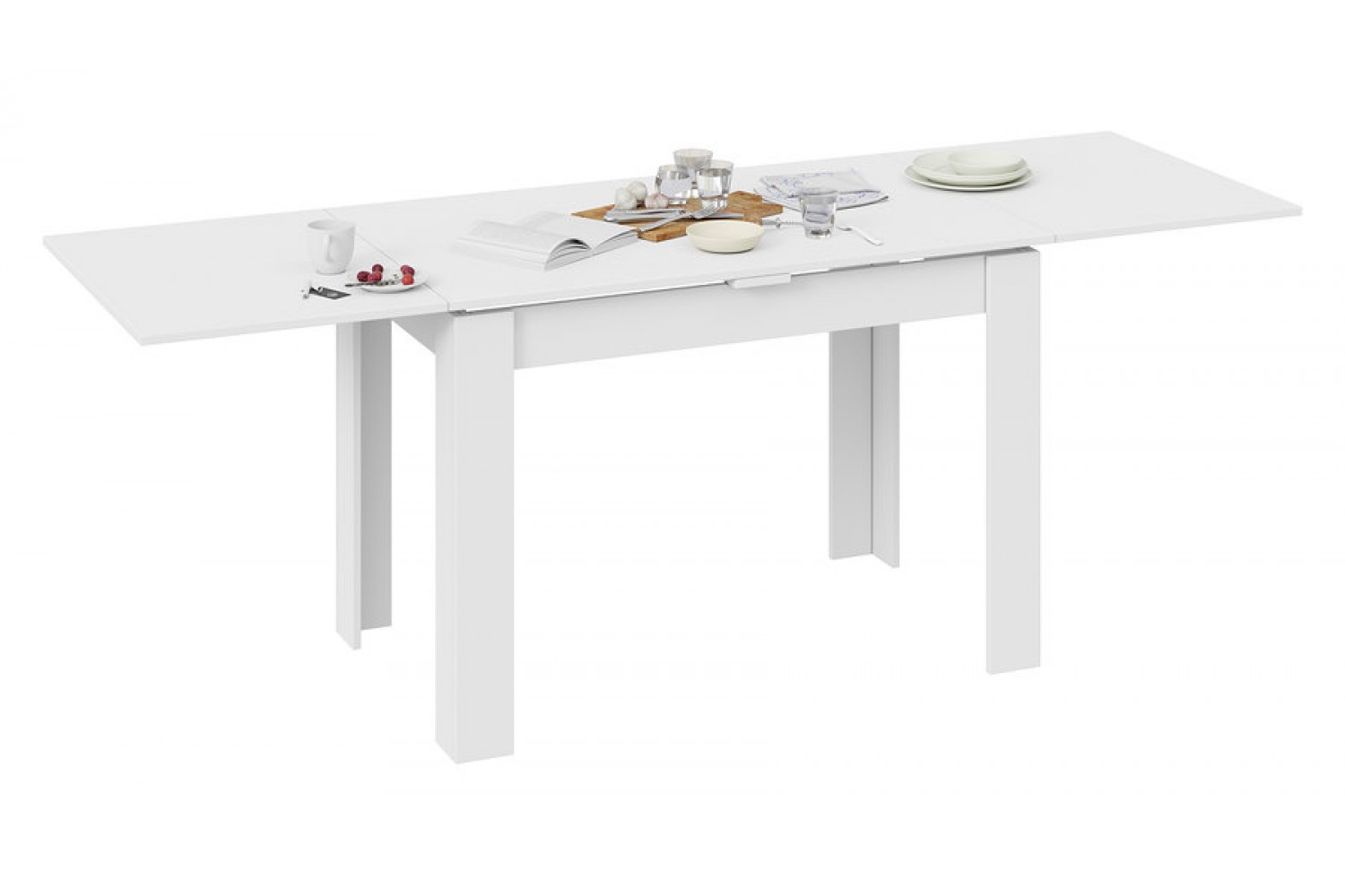 Изготовленный из качественного ЛДСП, стол отличается прочной конструкцией и долговечностью. Все кромки, включая ножки и столешницу, защищены ПВХ, что предотвращает повреждения и увеличивает срок службы изделия. Стол оснащен механизмом раскладки, позволяющим увеличить длину до 2098 мм, что делает его универсальным выбором для семейных обедов и дружеских встреч.