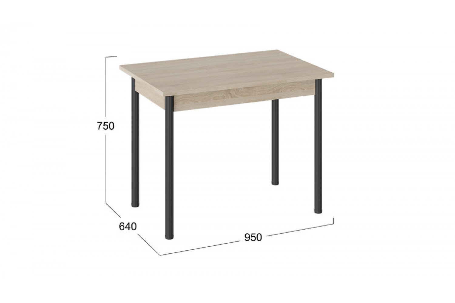 Размеры стола: длина 950 мм, глубина 640 мм и высота 750 мм, что делает его компактным и удобным для использования в различных помещениях. Столешница выполнена из качественного ЛДСП с кромкой из ПВХ, что обеспечивает долговечность и легкость в уходе.