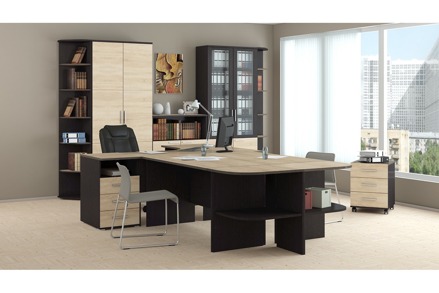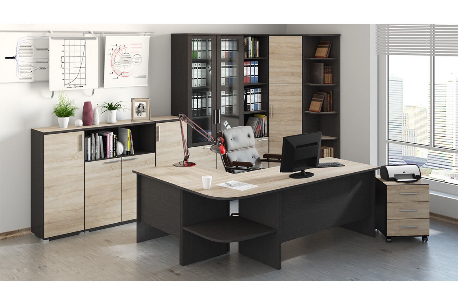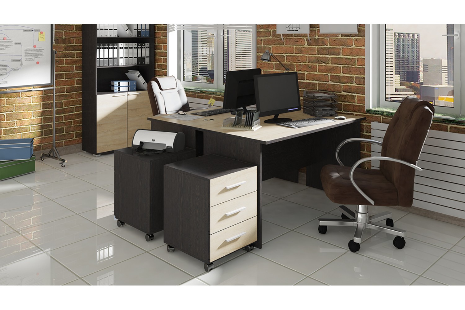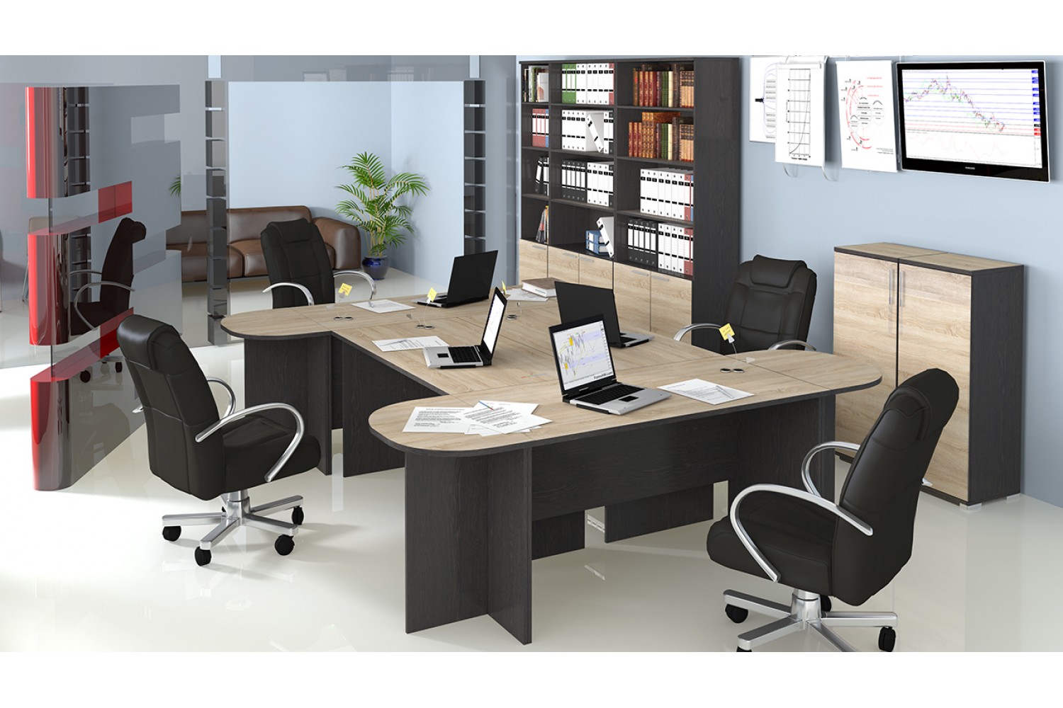 Полки и штанга из ЛДСП предлагают удобное хранение документов и офисных принадлежностей, а пластиковые ножки обеспечивают устойчивость и защиту поверхности пола. Мебель «Успех-2» не только функциональна, но и эстетически привлекательно выглядит, создавая комфортную рабочую атмосферу. Выберите «Успех-2» для эффективной организации вашего офисного пространства!