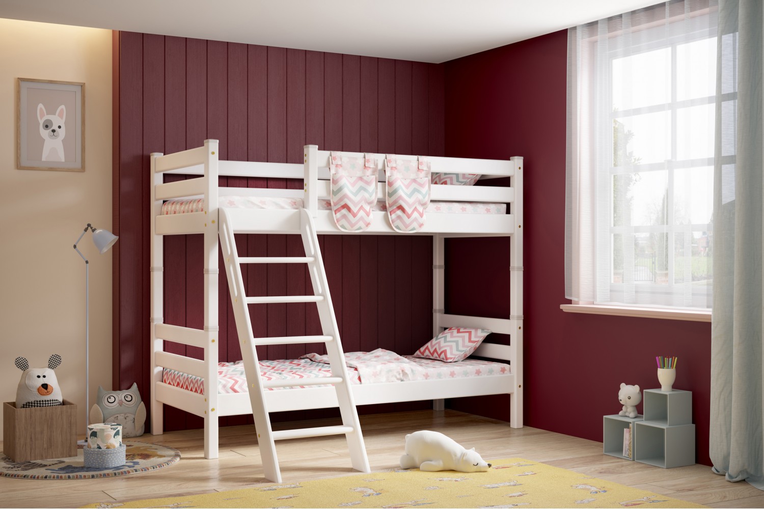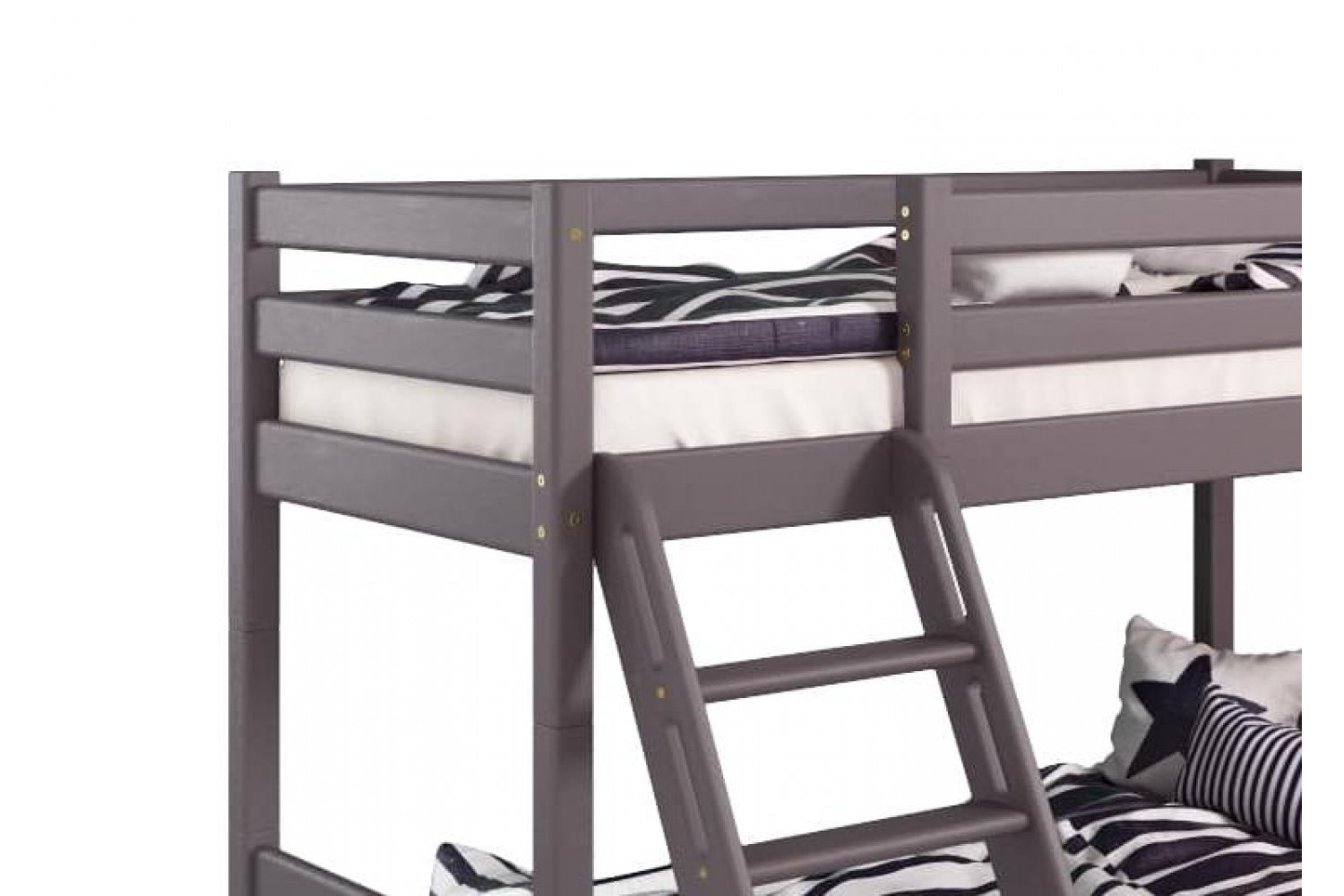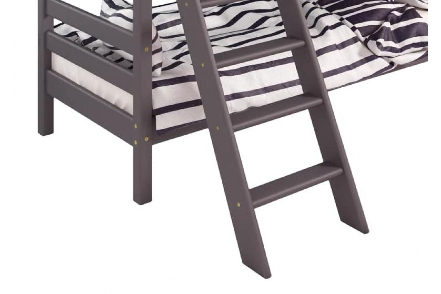 Уникальная особенность модели – возможность сборки с обеих сторон, что позволяет адаптировать кровать под любые условия. Наклонная лестница не только удобна, но и безопасна для детей, что делает её отличным выбором для активных малышей.