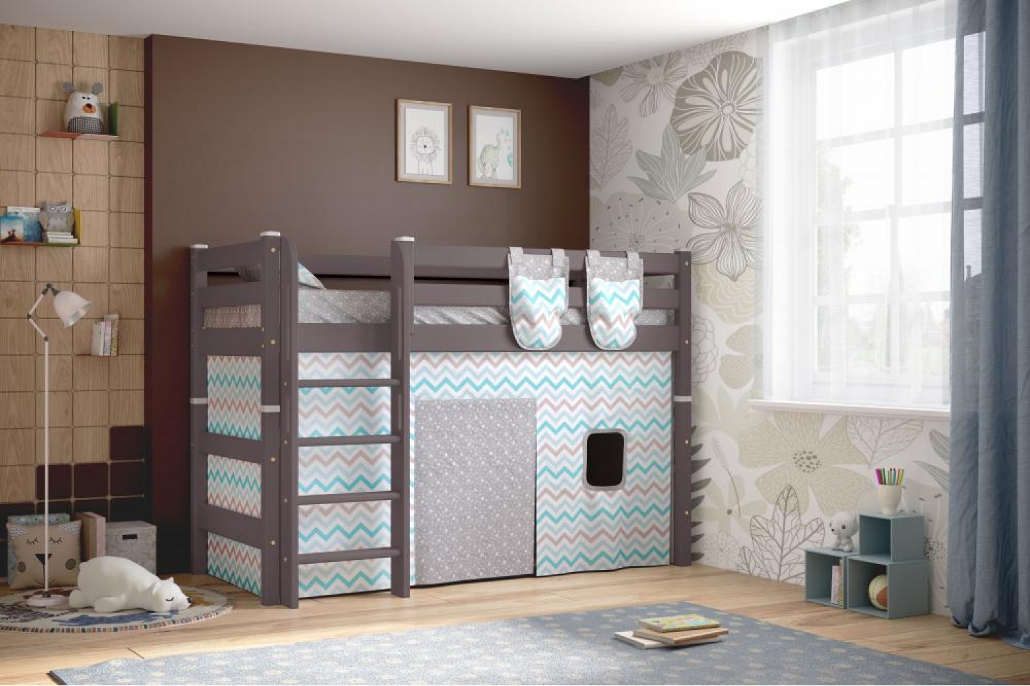 Описание Вариант 5 Полувысокая кровать "Соня" с прямой лестницей Лаванда