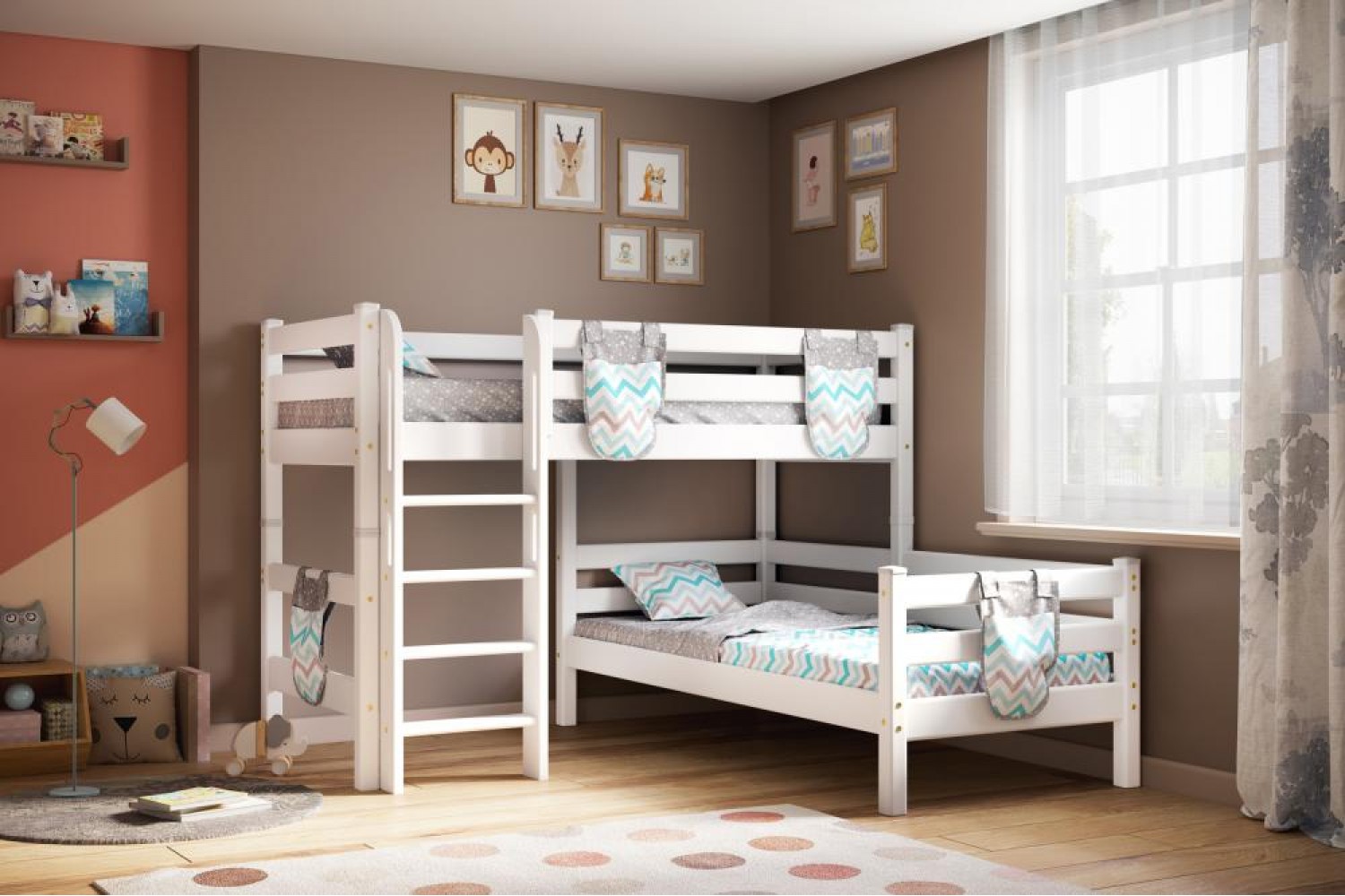 Эта модель оснащена прямой лестницей и может быть собрана на обе стороны, что позволяет легко адаптировать её под любые размеры и планировку комнаты. Стильный белый цвет придаёт интерьеру свежесть и легкость, а качественные материалы гарантируют долговечность и надежность. Угловая кровать "Соня" — это не только функциональность, но и эстетика, которая станет ярким акцентом в вашем интерьере.