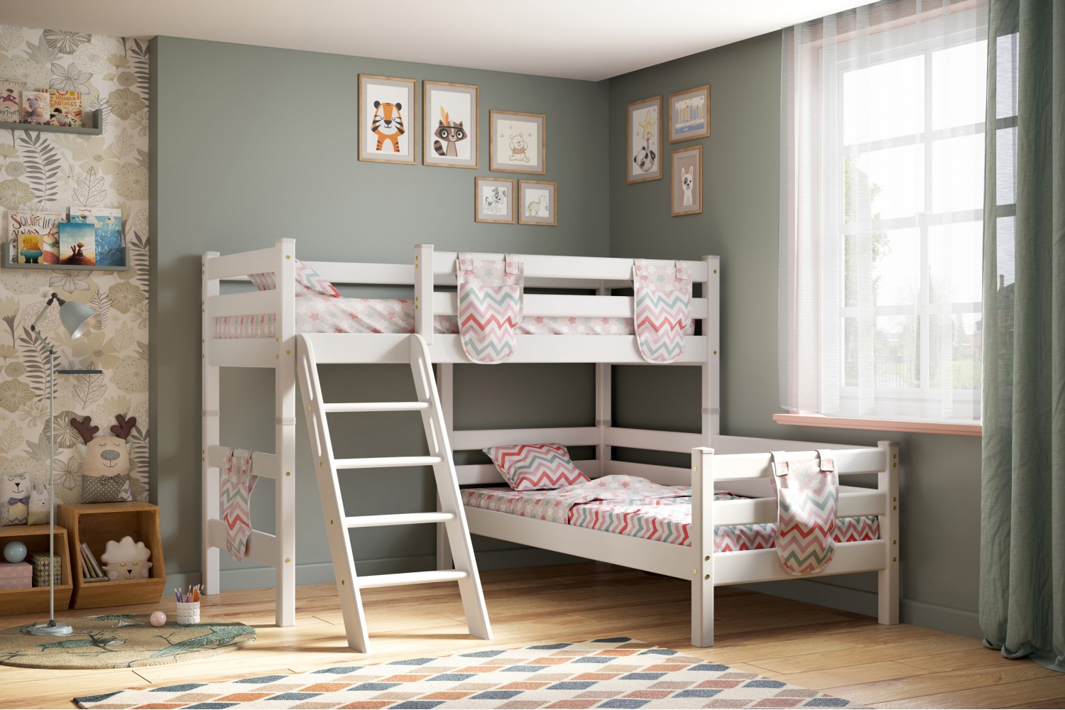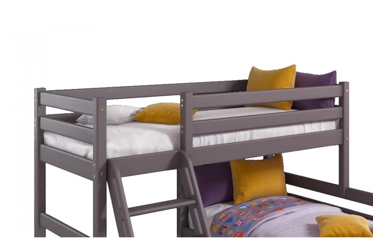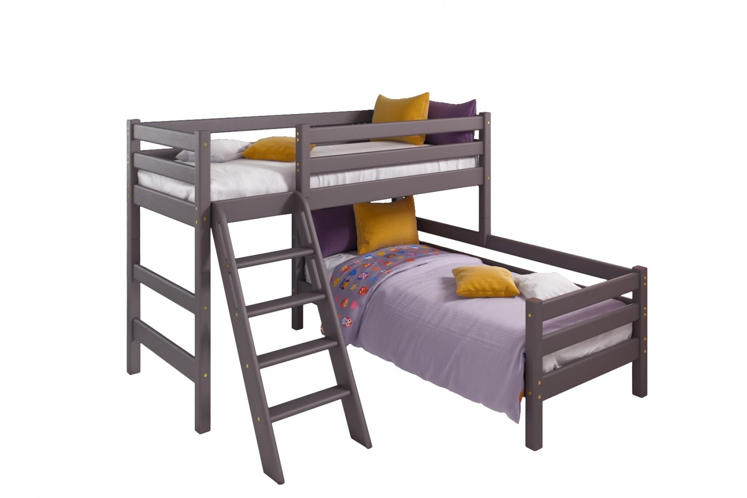 Элегантный цвет Лаванда добавляет нежности и стиля, а угловая форма помогает эффективно использовать пространство. Наклонная лестница обеспечивает безопасный и удобный доступ к спальному месту. "Соня" станет не только практичным элементом мебели, но и ярким акцентом в интерьере.